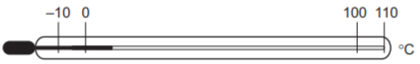 A thermometer has graduations which start at –10°C and end at 110°C.