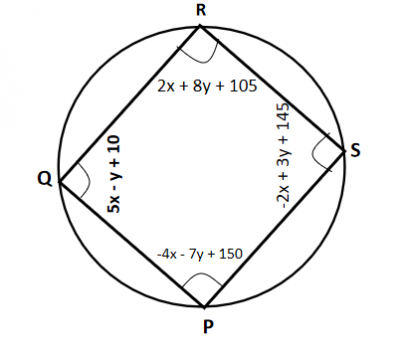 PQRS is a cyclic quadrilateral. Find x + y