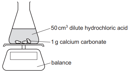 The mass of the conical flask and its contents increases as carbon dioxide is formed.