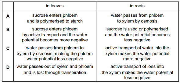 Which processes occur in the vascular tissue in leaves and in roots?