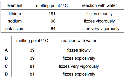 The table shows some properties of some of the elements in Group I of the Periodic Table.