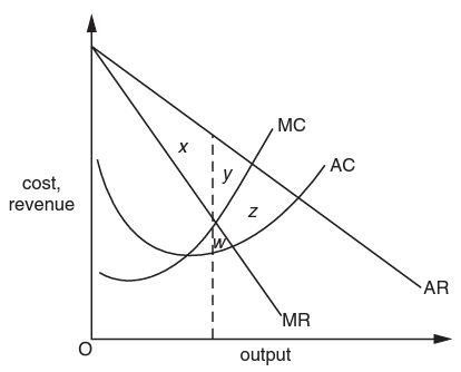 The diagram shows the cost and revenue curves of a profit-maximising monopolist.
