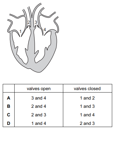 Which valves are open or closed when the atria are relaxed and the ventricles contracted?