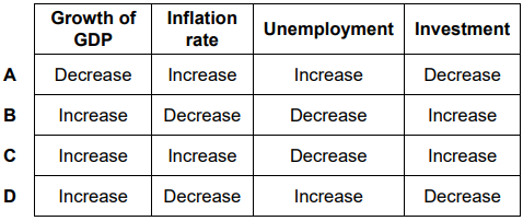 Which one of the following combinations, A, B, C or D, is most likely to occur in the recovery phase of the economic cycle?