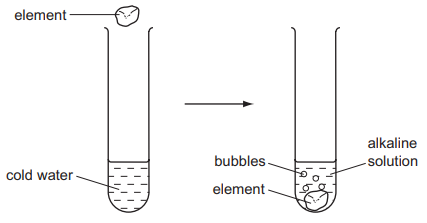 The diagram shows an element being added to cold water to form a gas and an alkaline solution.