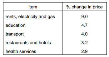 The table shows the percentage price changes in some items in the UK Consumer Price Index (CPI) in the year to 1 June 2006.