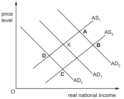 The government of a country plans to raise income tax rates. The initial equilibrium for the country is represented by point X on the diagram.