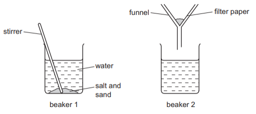 The contents of beaker 1 are stirred and then poured into the funnel above beaker 2. What is in beaker 2?