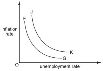The diagram shows the relationship between the rate of inflation and the rate of unemployment.