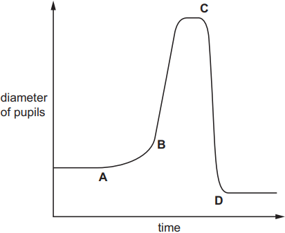 The graph shows changes in the diameter of a person’s pupils while outdoors on a sunny day.