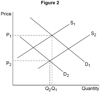 Figure 2 shows supply and demand in the market for beef. D$_1$ shows the initial demand and S1 the initial supply curve.