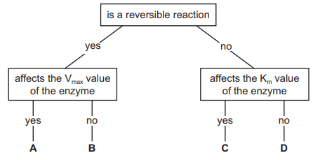 Which letter in the flow diagram shows the effect of adding a competitive inhibitor to an enzyme-catalysed reaction?