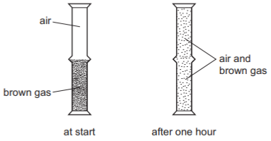 A jar of air was placed upside down on top of a jar containing a brown gas as shown.