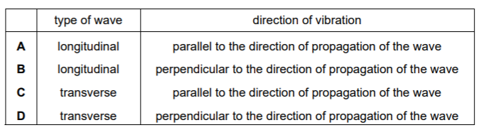 Which row describes a seismic P-wave?