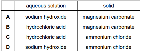 An aqueous solution reacts with a solid. The products are an alkaline gas, a salt and water.