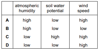 In which combination of environmental conditions are the stomata of a plant most likely to close?