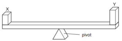 Two blocks X and Y are placed on a beam as shown. The beam balances on a pivot at its centre.