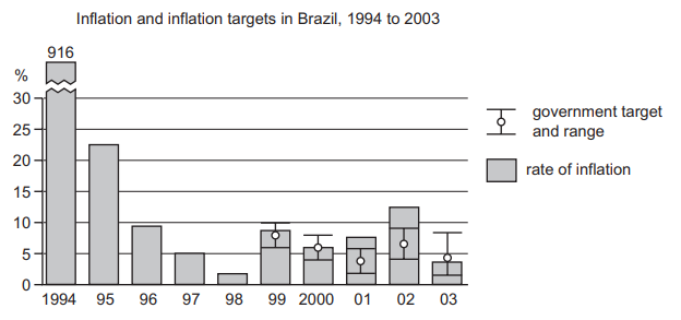 Before 1999 the Brazilian government did not have a desired target rate of inflation. From 1999 it set target rates within an upper and lower boundary.