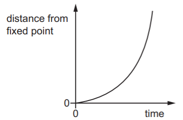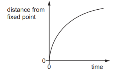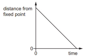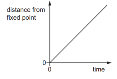 The distance of each object from a fixed point on the line is plotted against time.