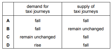 What would be the most likely effects on the demand and supply of taxi journeys into the city?