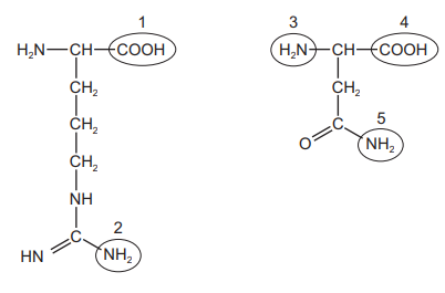 The diagrams show the structures of two amino acids, each of which has more than one amine $\left( {-N{H_2}} \right)$ group.