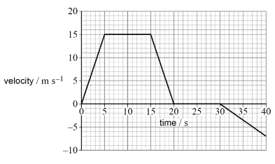 The graph shows how its velocity varies with time.