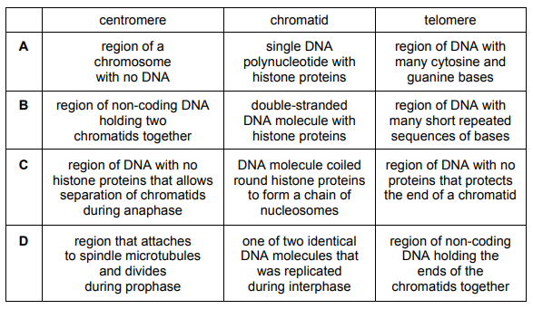 Which row correctly describes parts of chromosome structure present during mitosis?