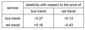 The table gives estimates of the price elasticities and cross elasticities of demand for bus and rail travel.