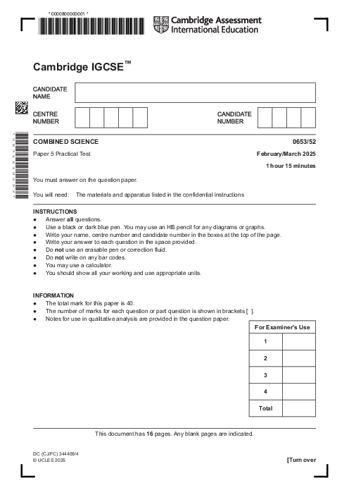 Exploring past papers for Cambridge IGCSE Science Combined (0653)?